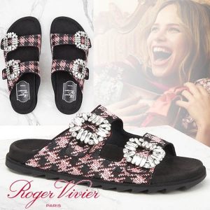 ロジェ ヴィヴィエ クリスタル付 千鳥格子 ダブルストラップ...