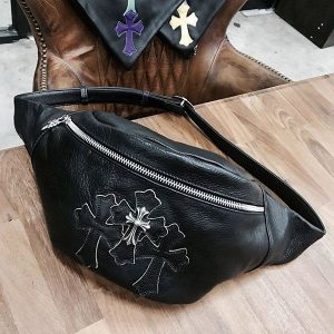 CHROME HEARTS WEST BAG SNAT PACK #3 CH CROSS WITH PATCHES IN BLACK HEAVY LEATHER/クロムハーツ ウエストバッグ スナットパック #3 CHクロス ウィズ パッチ ブラック ヘビーレザー